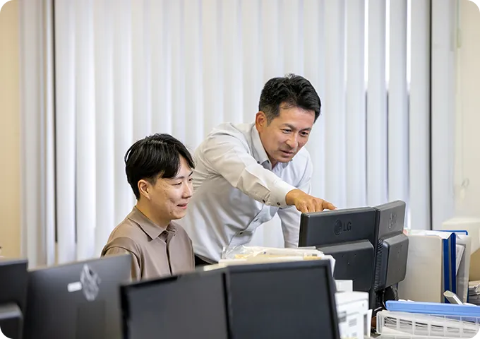 実際の業務を通じて学ぶ「OJT制度」を通じて、新人社員の成長をしっかりと支援しています。